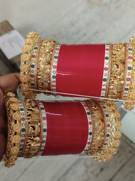 Traditional red chooda with hand-painted kangans
