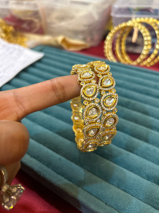 ‘’Rhea’ pachi kundan drop shape bangels